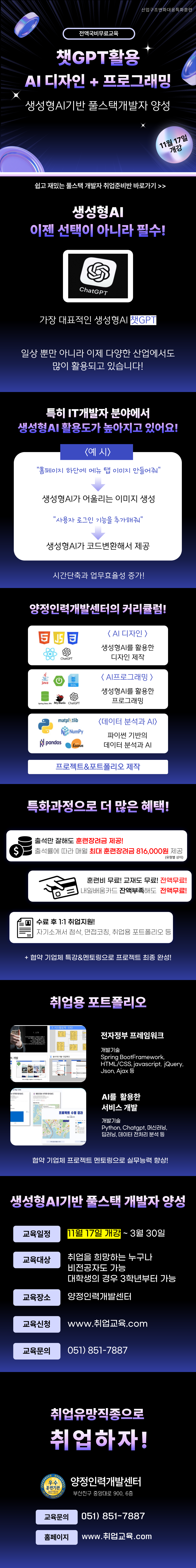 제목 [전액국비/취업특화] 챗GPT활용 풀스택 개발자 양성(AI디자인+AI프로그래밍)